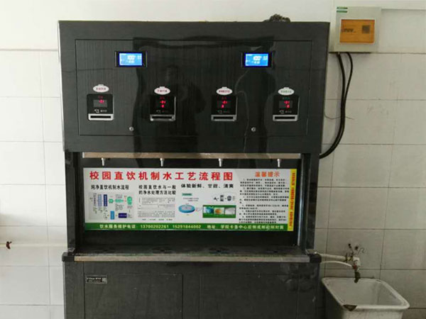 校園直飲水的二套方案: 方案一:中央凈水設(shè)備系統(tǒng)(中央凈水機(jī)+凈水輸水管網(wǎng)+終端飲水機(jī)) 建立 中央凈水設(shè)備系統(tǒng) ,由中央凈水機(jī)生產(chǎn)凈水,通過(guò)循環(huán)管網(wǎng)輸送至每棟教學(xué)樓、宿...