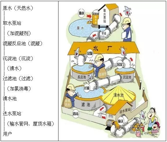 目前自來水廠的制水工藝大致如下: