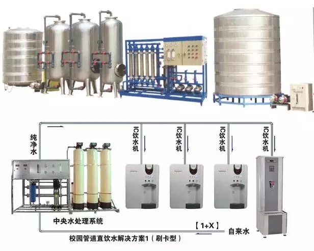 方案一:中央凈水設(shè)備系統(tǒng)(中央凈水機+凈水輸水管網(wǎng)+終端飲水機)